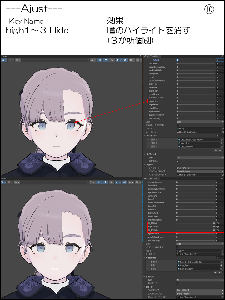 ⑩:瞳のハイライトを消す