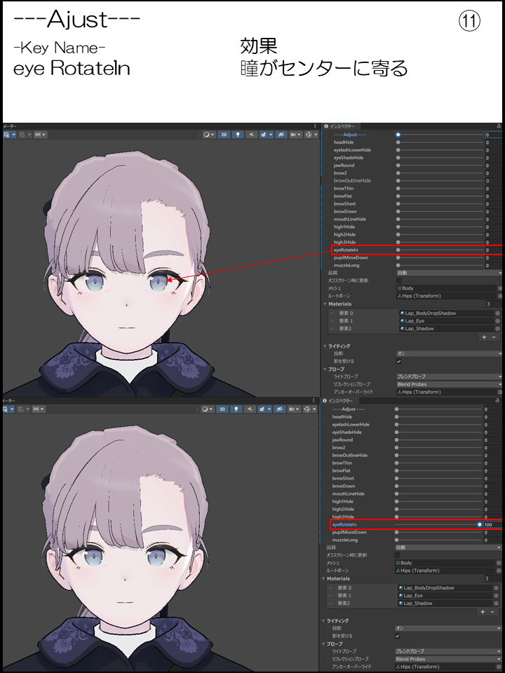 ⑪:瞳がセンターに寄る