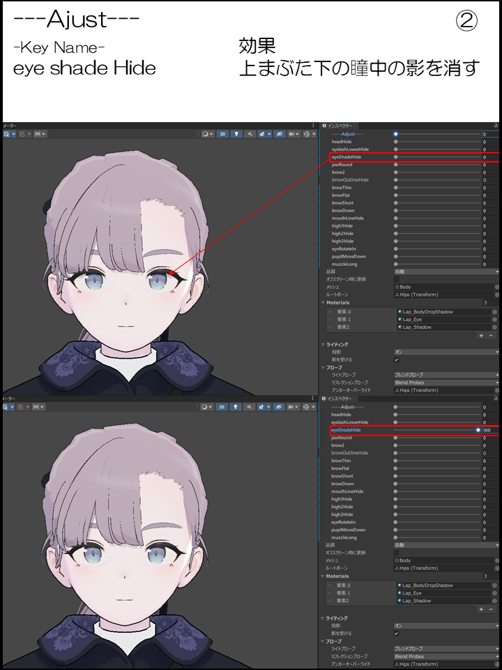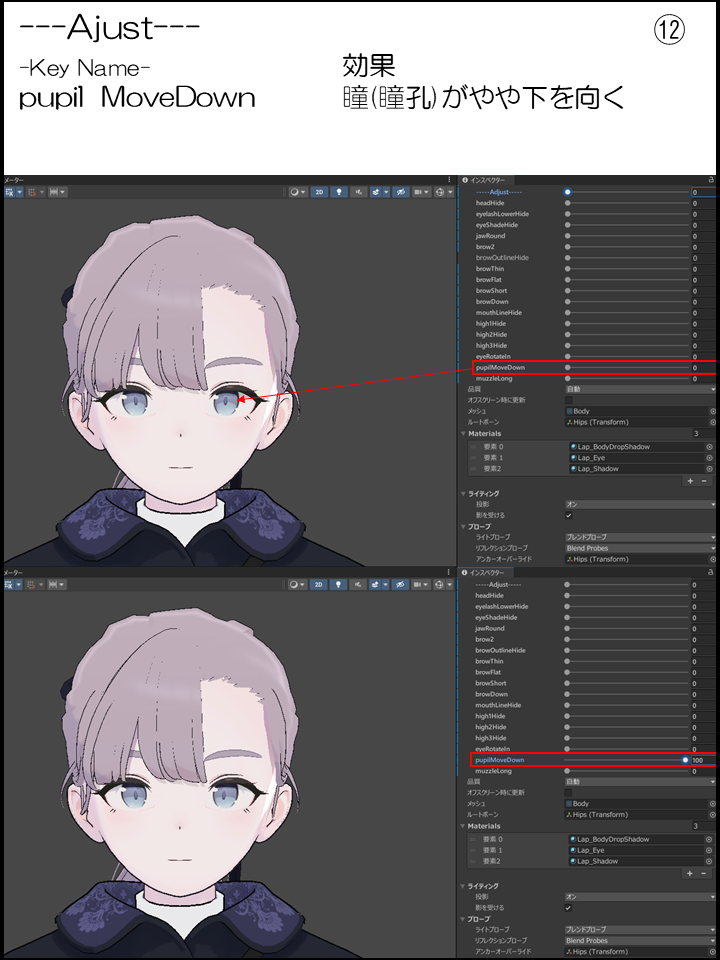 Lapwingにはたくさんのシェイプキーがありますが、あまりいじらない人からすると「うわ、キー多すぎて手出しずらい、しかも英語」かつスライドしないとどの変化かわからない方に向けたページです。