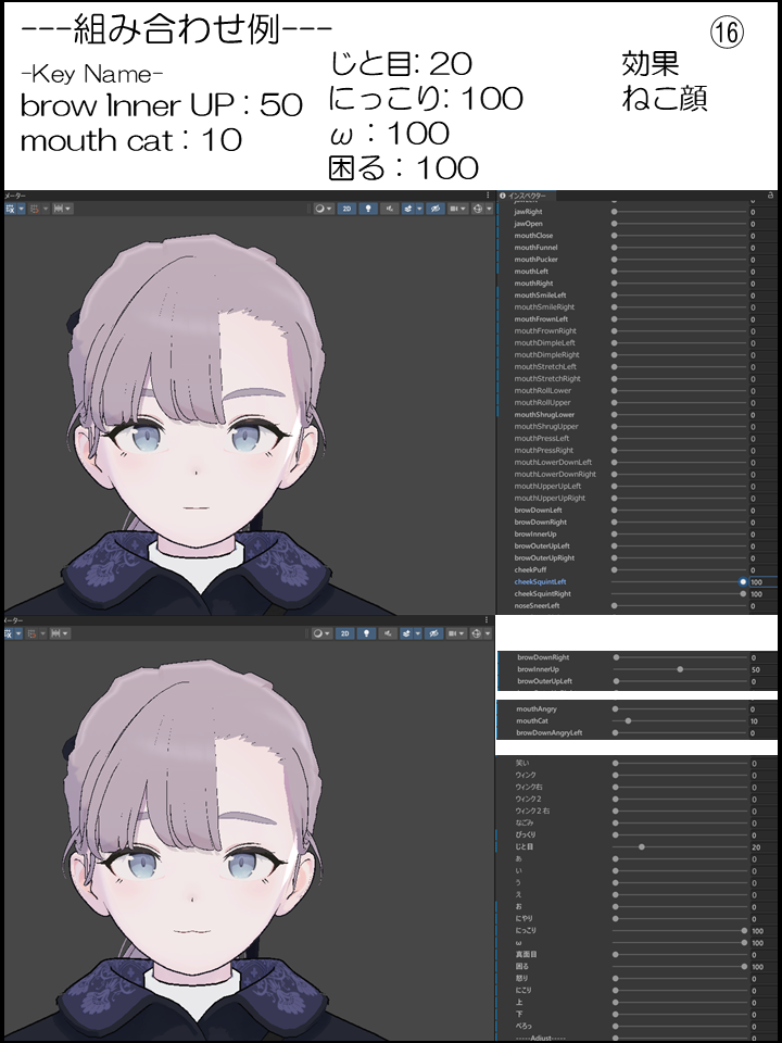 ⑯:ねこ顔(シェイプキー混合)