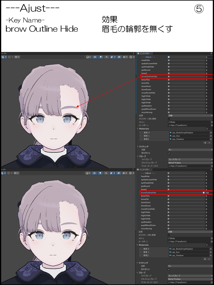 ⑤:眉毛の輪郭を無くす