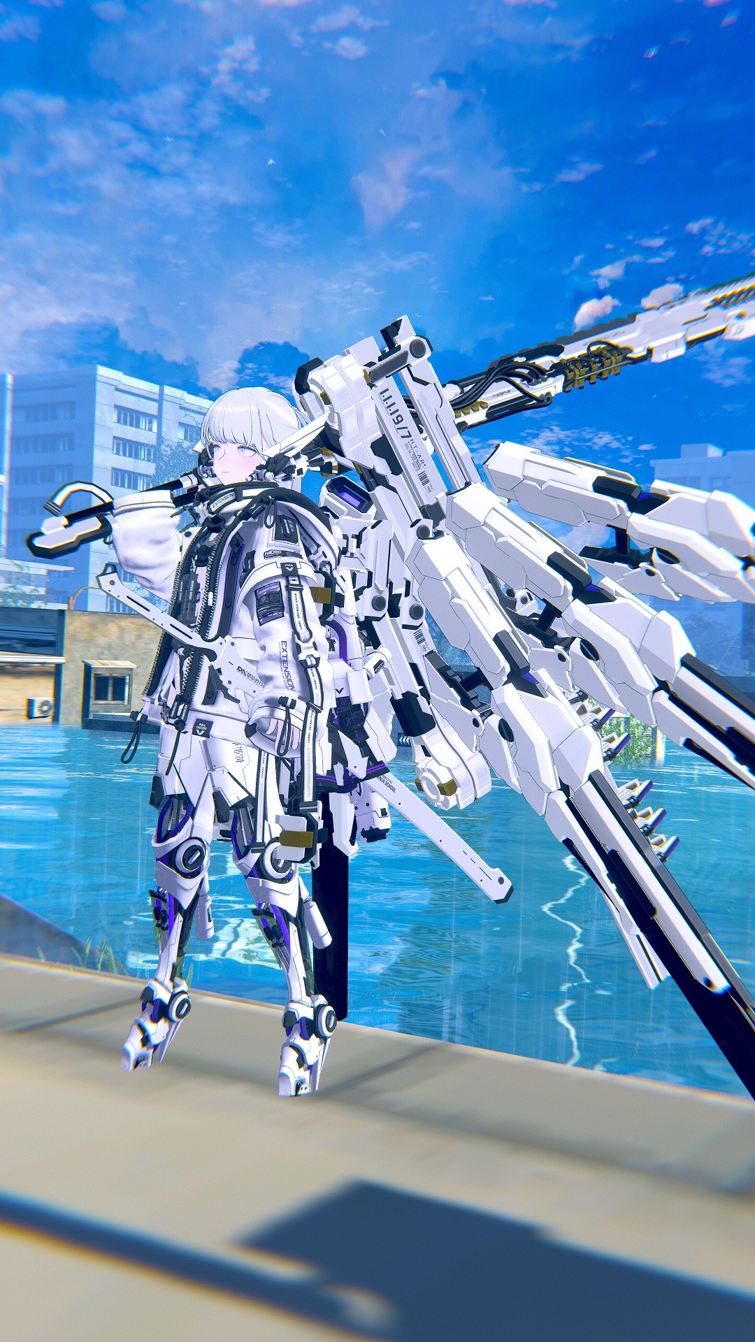 武器は背面の翼ユニットがEX-RIPSE、背負っている剣ユニットが白鯨です。こういうロマン武器、大好物です。武装女子もいいよね!