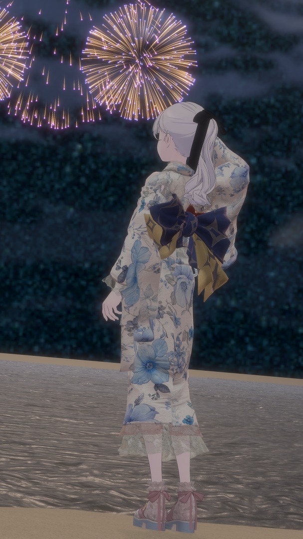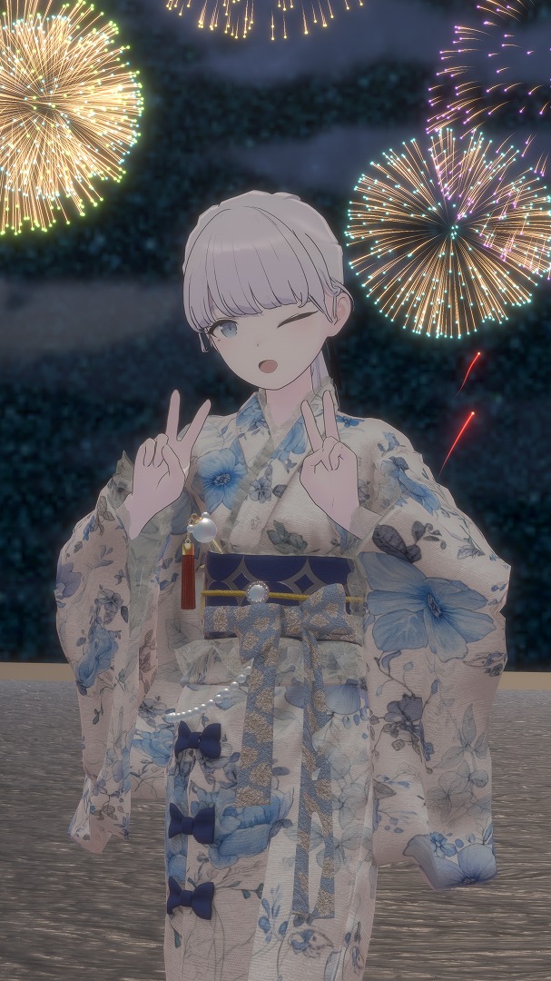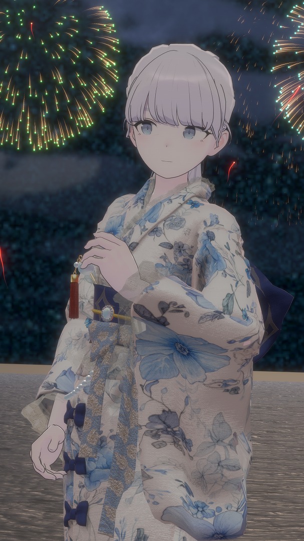 浴衣や着物もいろいろ対応品がありますが、【♯ichicoro_Plus】様の浴衣はこの柄と色合いがLapwingにピッタリだと思って即購入しました。このコーデはメイクや装飾品を使用していなくテクスチャの改変も行っていないため再現しやすいコーデとなっています。デフォルトでも十分かわいいですが、改変が慣れてきたら色味やメイクをこだわっても良い、伸びしろのある衣装です。